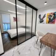 Квартира расположена на 17-этаже 25 этажного дома. Вид из окна завораживает. Панорамные окна делают квартиру светлой и легкой.