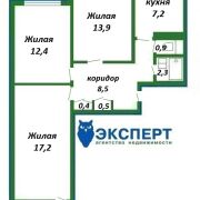 3 раздельных комнаты, большой квадратный коридор, с мебелью и техникой.