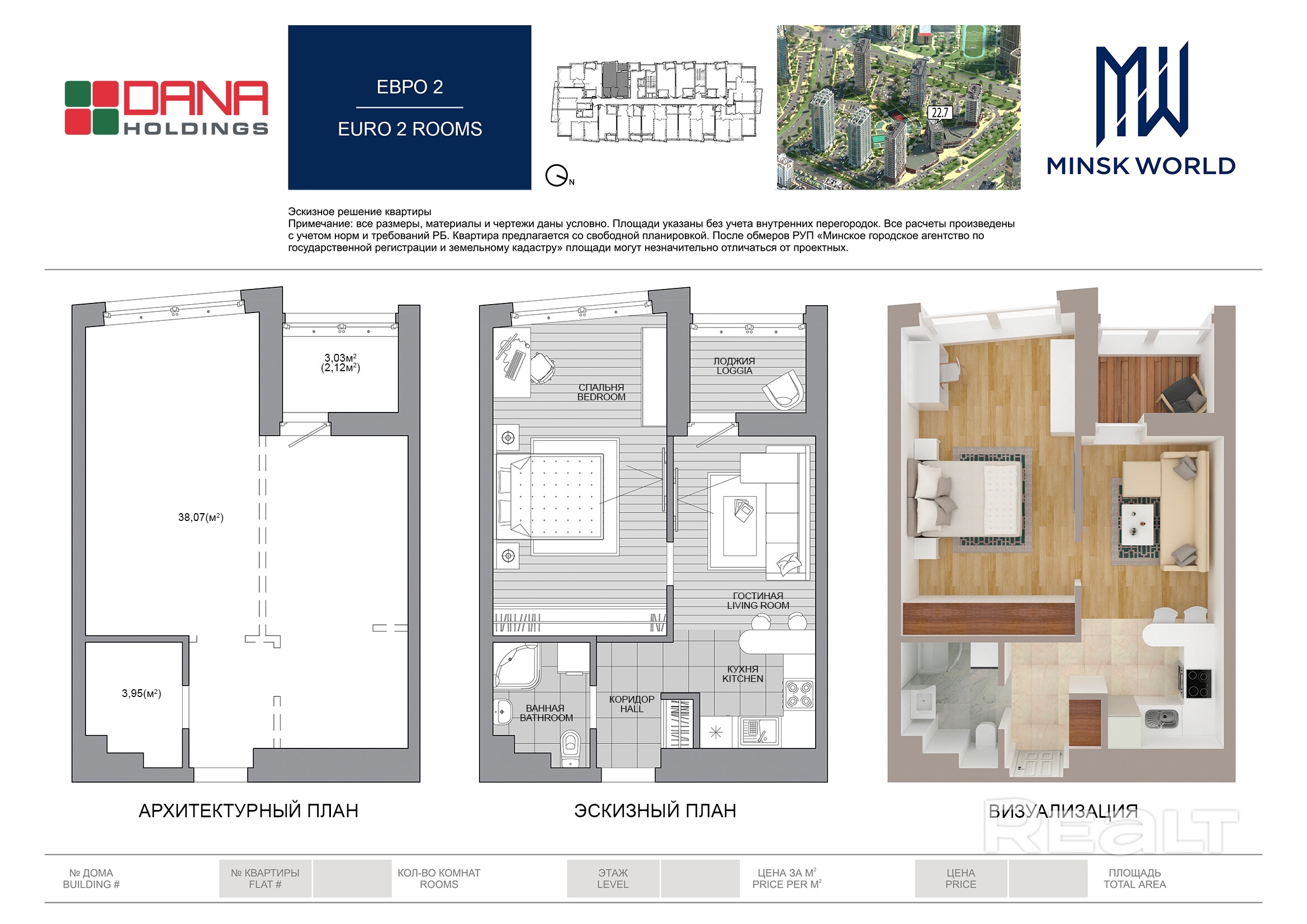Квартира 68 в Минск Мир / Дом 22.7, площадью 44 кв.м.