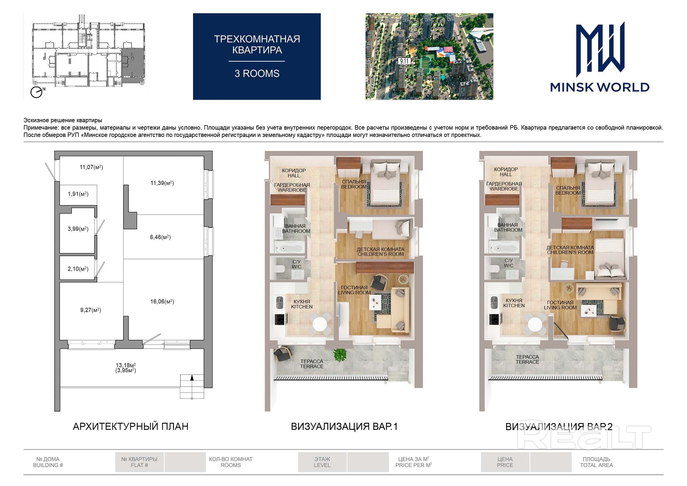 Квартира 3 в Минск Мир / Дом 9.11, площадью 68 кв.м.