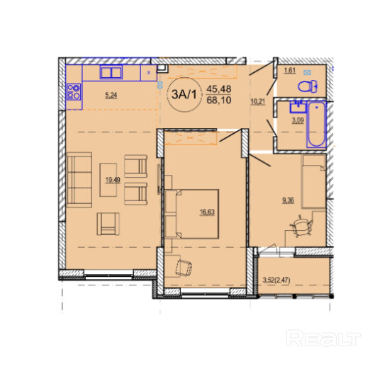 68.09 м²