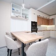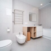 Готовая к жизни: Квартира полностью укомплектована всей необходимой бытовой техникой от Maunfeld (встроенный холодильник, посудомоечная машина, духовой шкаф, вытяжка), индукционной варочной поверхностью Bosch, а также премиальной сантехникой. Для вашего комфорта установлены 2 кондиционера, стиральная машина, большая ванна и биде. Бытовая техника готова к работе. Теплый пол в зоне прихожей и в ванной комнате.