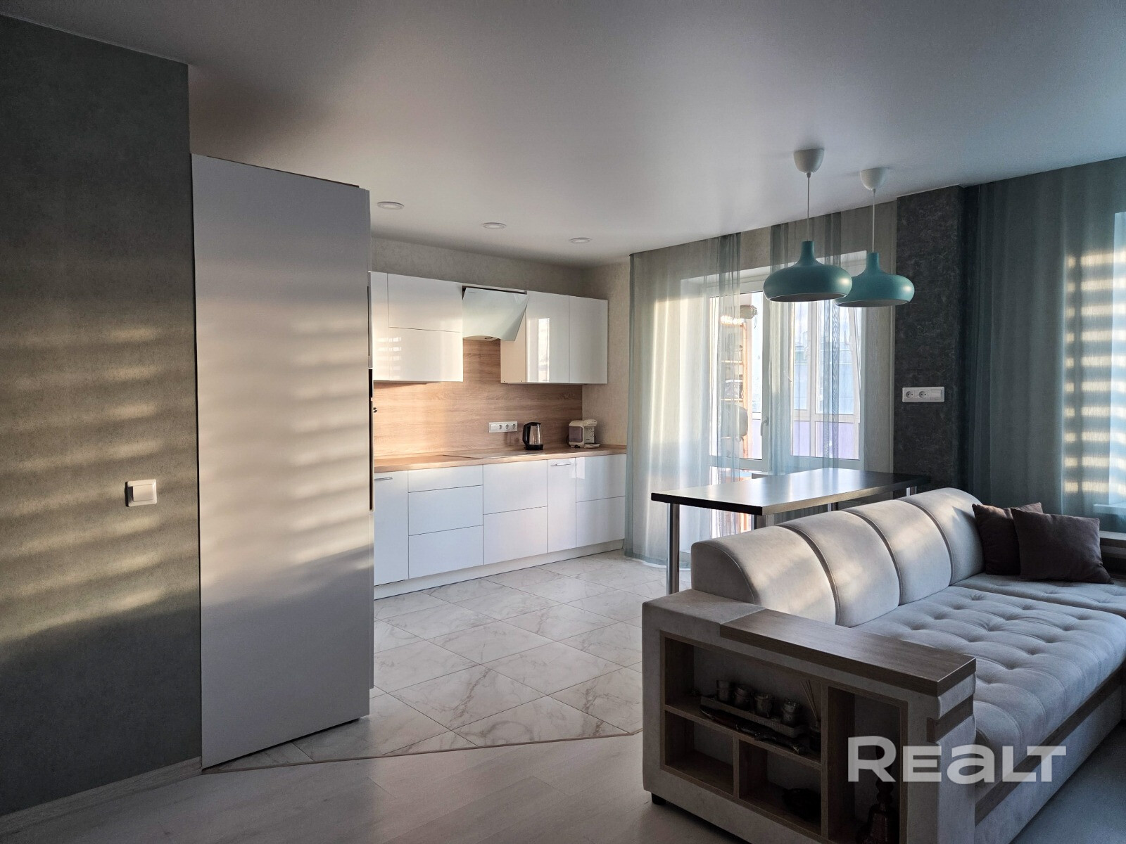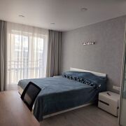 Многоуровневая подстветка, теплый пол, встроенная кухня с бытовой техникой европейских производителей. Мебель, большие шкафы, кровать с ортопедическим матрасом, TV.