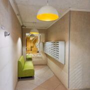 Видеонаблюдение в подъезде и по периметру дома. Закрытая парковка. Во дворе красивые насаждения и места для отдыха.