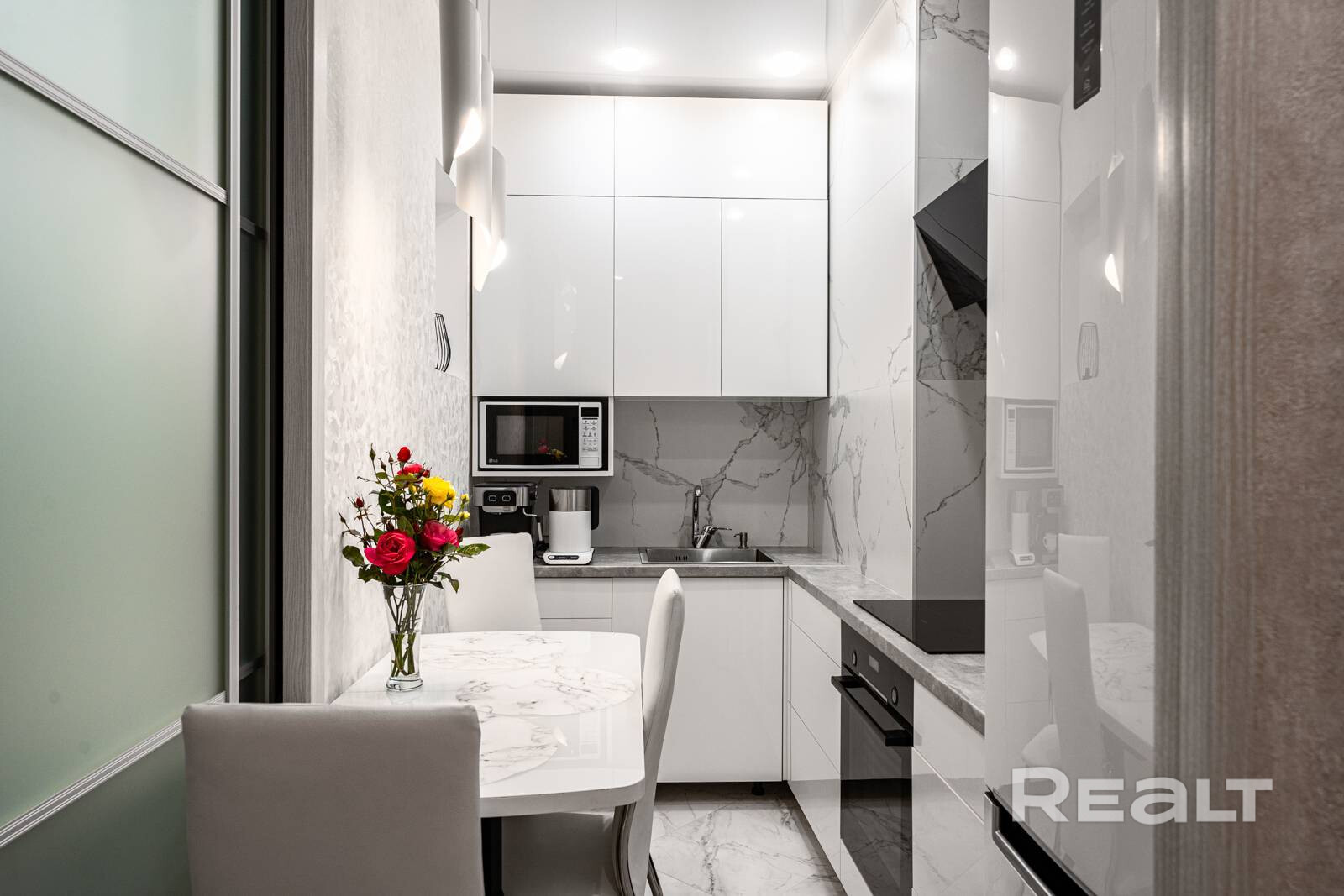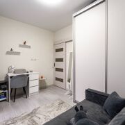 Площадь в квартире использована очень рационально: у вас есть две раздельные комнаты (кухонную зону можно отделить выдвижной перегородкой).