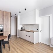 Просторная кухня-гостиная - идеальное место для семейных ужинов или встреч с друзьями. Это сердце квартиры, где каждый уголок продуман для удобства и комфорта.