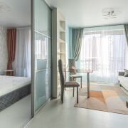 Дом каркасно-блочной конструкции, построенный в 2021 году. Квартира расположена на комфортном 8 этаже 24-этажного здания. Панорамные окна. Вид на зеленую зону и старый аэропорт. Просторная застекленная лоджия.