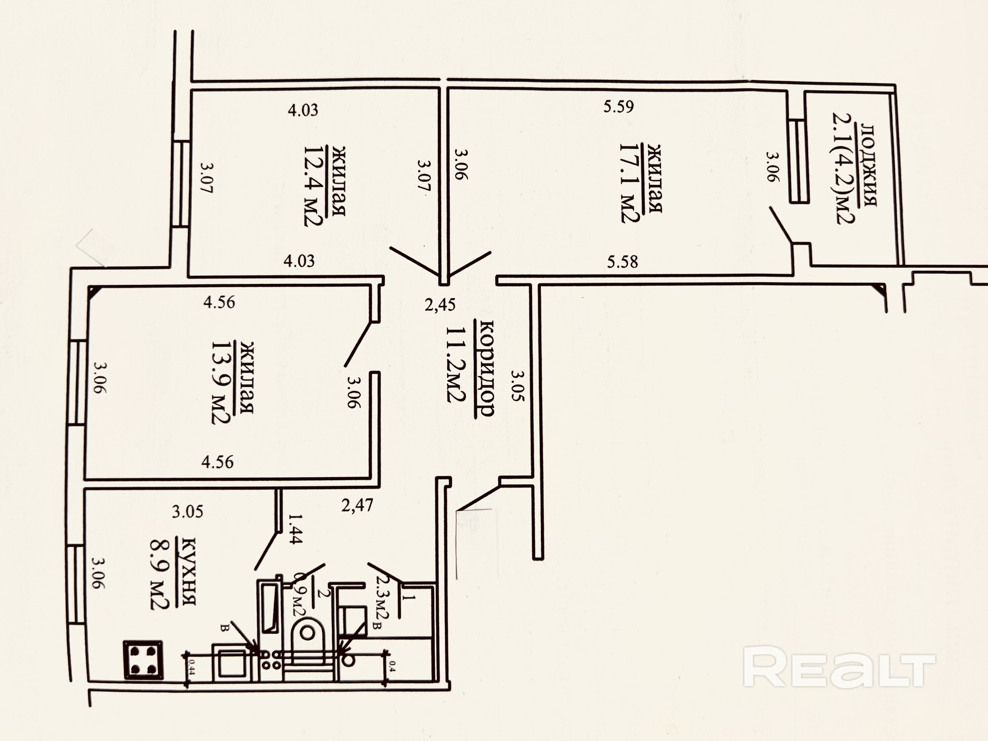 Купить 3-комнатную квартиру, г. Минск, тракт Игуменский, 34