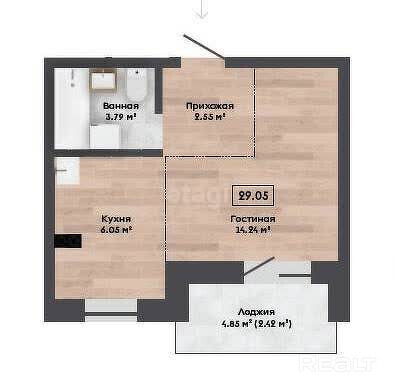 Квартира площадью 29,5 кв.м. имеет квадратное соотношение сторон и позволяет воплотить в жизнь различные задумки по будущей планировке, как с изолированной комнатой так и в формате студии.