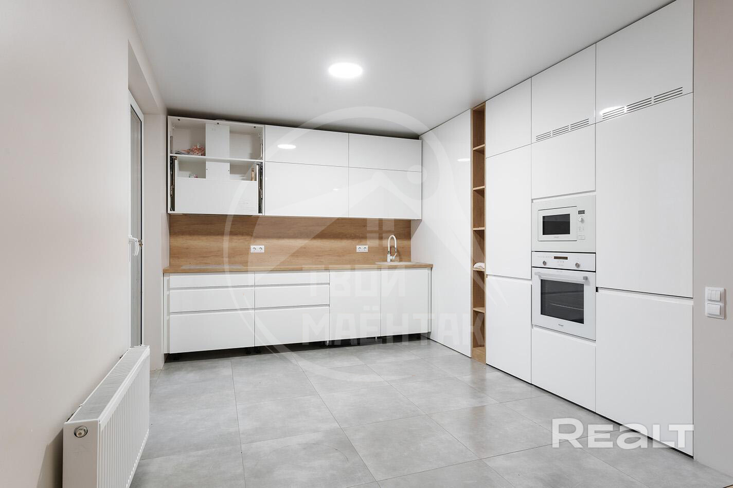 Кухня со всей встроенной техникой: варочная панель, духовой шкаф,
