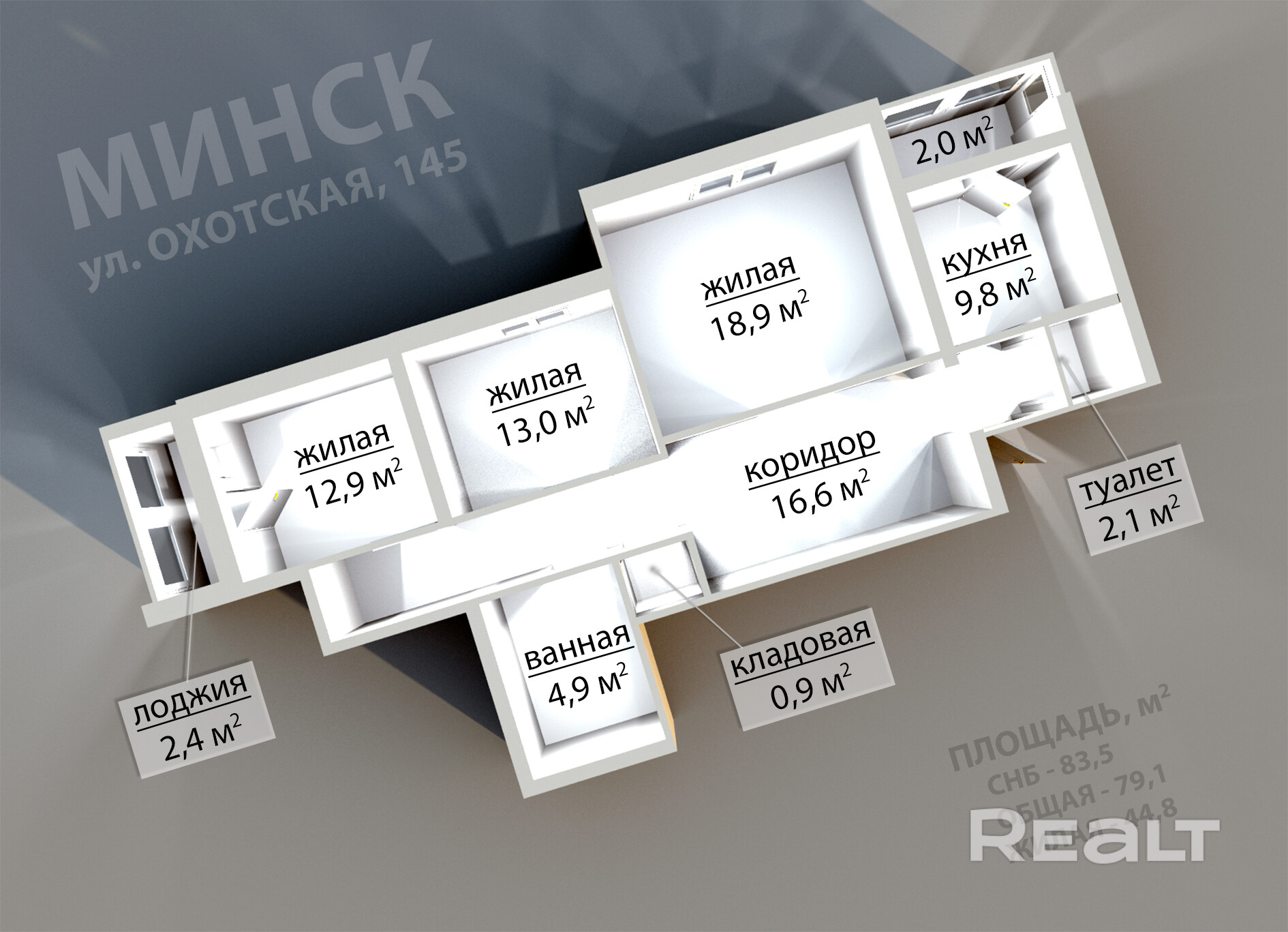 • Общая площадь: 79.1 кв.м (по СНБ — 83.9 кв.м)