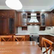 Мебель гостиной и кухонной зоны сделана в едином стиле, она входит в стоимость квартиры, как и её оборудование. Кухонная линейка оборудована встроенной техникой. Холодильник "Электролюкс" оригинал, пр-во Швеция. Разморозка автоматическая. Электроплита с печкой пр-во "BOSH". Мойка с двумя раковина и местом для сушки. Посудомойкой " BOSH". Вытяжка с подсветкой. Большая рабочая поверхность. В гостиной зоне может разместиться большой диван и обеденная группа идеальное пространство для семейных вечеров и приёма гостей.