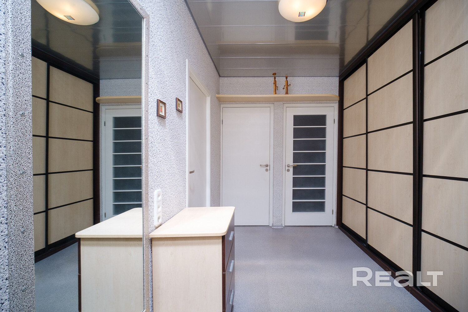 Стеклопакеты, встроенные шкафы, счетчики воды, домофон, зеленая зона, стоянка, детская площадка