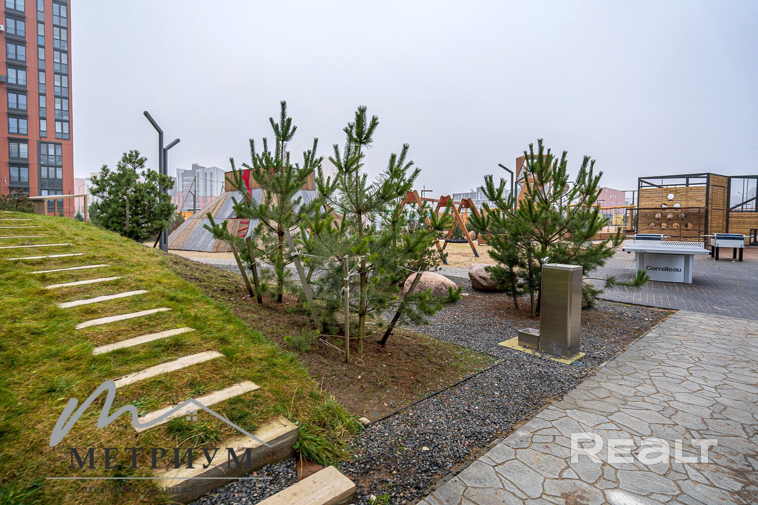 Во дворе расположены современные, оснащенные всем необходимым, детские игровые площадки, зоны отдыха для взрослых, велопарковка и множество зелени. Дворы закрыты от машин, что делает их абсолютно безопасными.