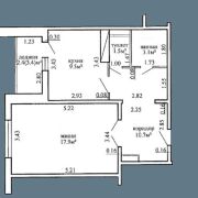 Просторная комната (17.9м), имеет ширину 3м43см, что позволяет сделать зонирование на спальную и гостиную зоны.