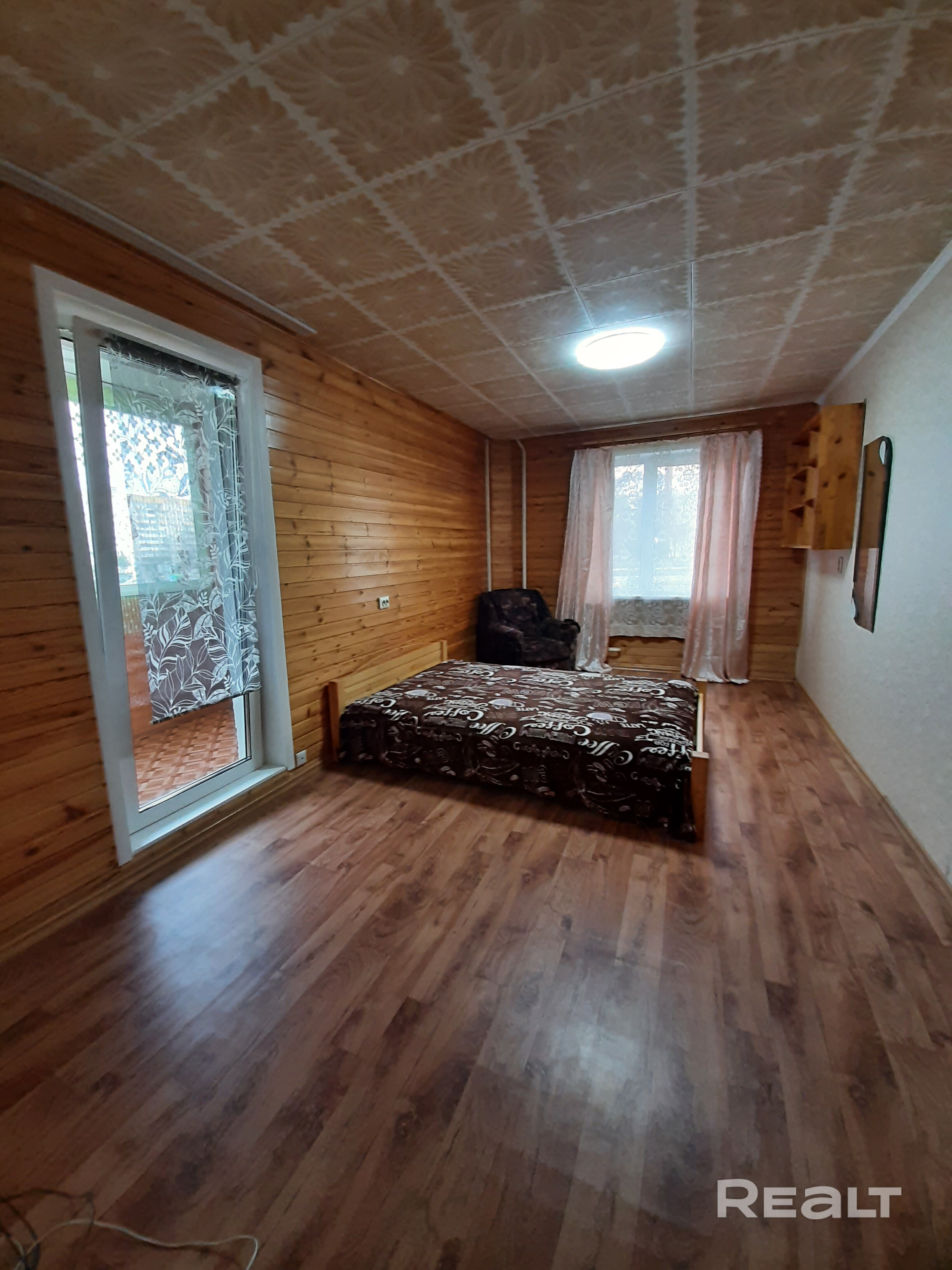 Просторная 1-комнатная квартира в 10 мин от ст.м.Уручье. Отличное местоположение: лесопарковая зона, много транспорта, широкий газон перед окнами, супермаркет рядом. Высокий первый этаж! Комната и лоджия утеплены: две стены заделаны вагонкой, под которой минеральная вата. Также утеплен пол. Большой коридор, кладовка и антресоли позволяют максимально удобно разместить вещи. Стеклопакеты, металлическая дверь. Комфортна даже для семьи с детьми. Никто не прописан, чистая продажа собственником