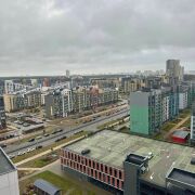 Застеклённая лоджия – идеальное место для отдыха, где можно наслаждаться утренним кофе или вечером любоваться панорамным видом с 16-го этажа.