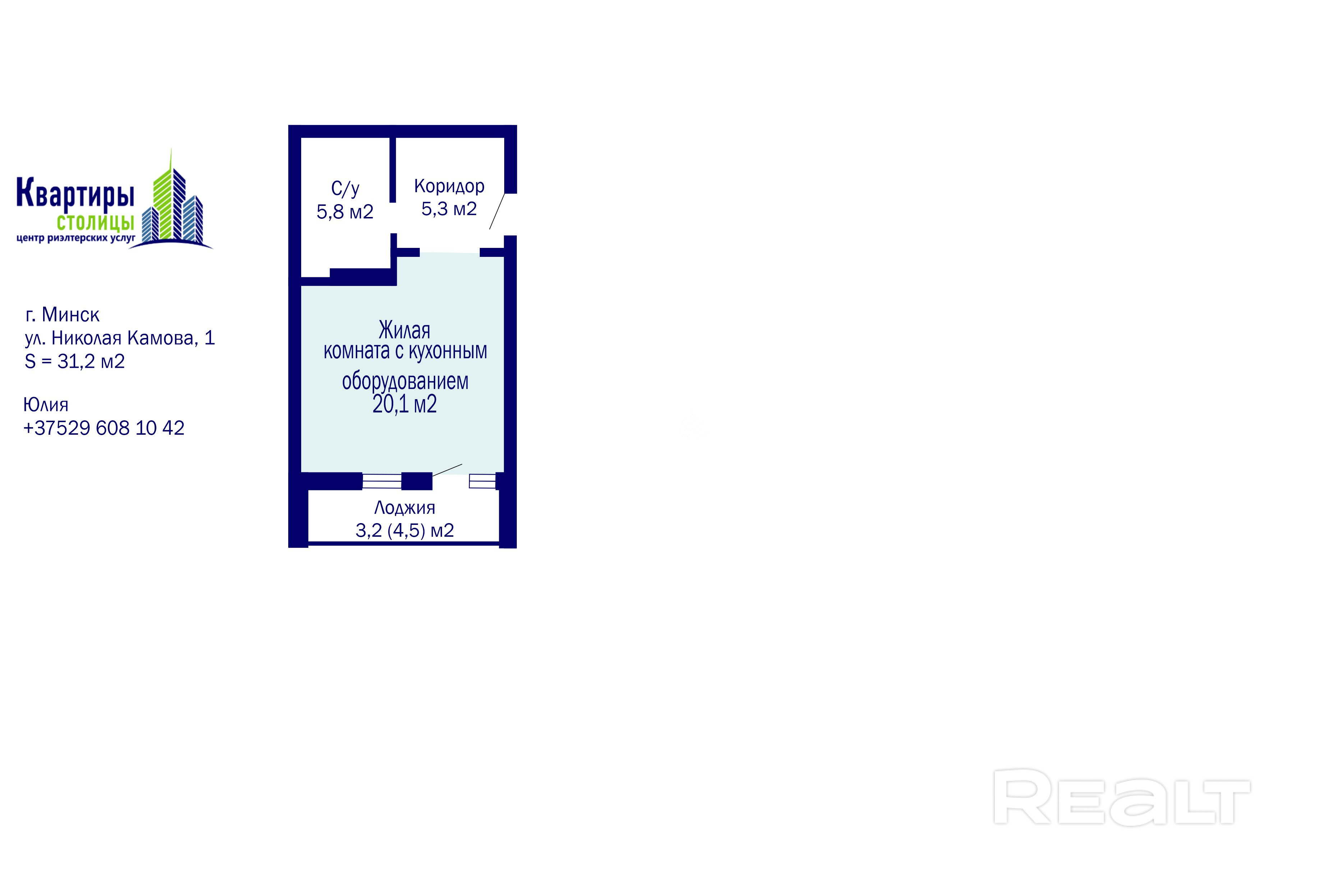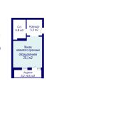 - Общая площадь по СНБ - 34,4 кв. м: из них 20,1 кв. м занимает жилая зона с кухонным оборудованием.
