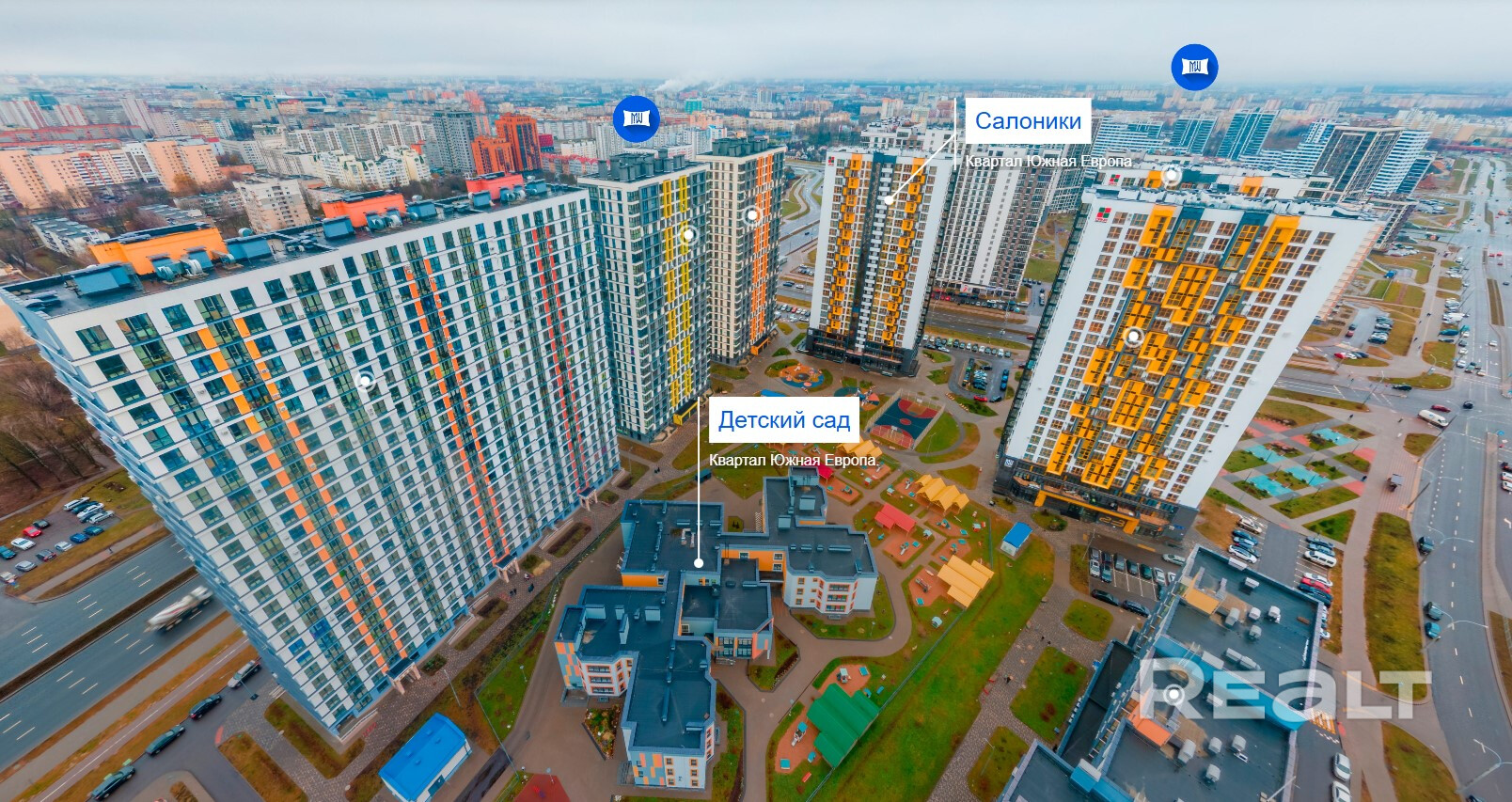 В каждом квартале современные школа или сад с бассейнами и современным оснащением