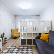 Кухня -10,2 м.кв, гостиная – 17,9 м.кв., изолированная комната – 13,9 м.кв., ванна – 3,1 м.кв., туалет – 1,1 м.кв., прихожая – 10,6 м.кв. с большим встроенным шкафом.