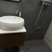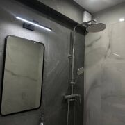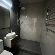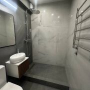 · Стильный совмещённый санузел, полностью облицованный итальянской плиткой. Эстетика и практичность в каждой детали.