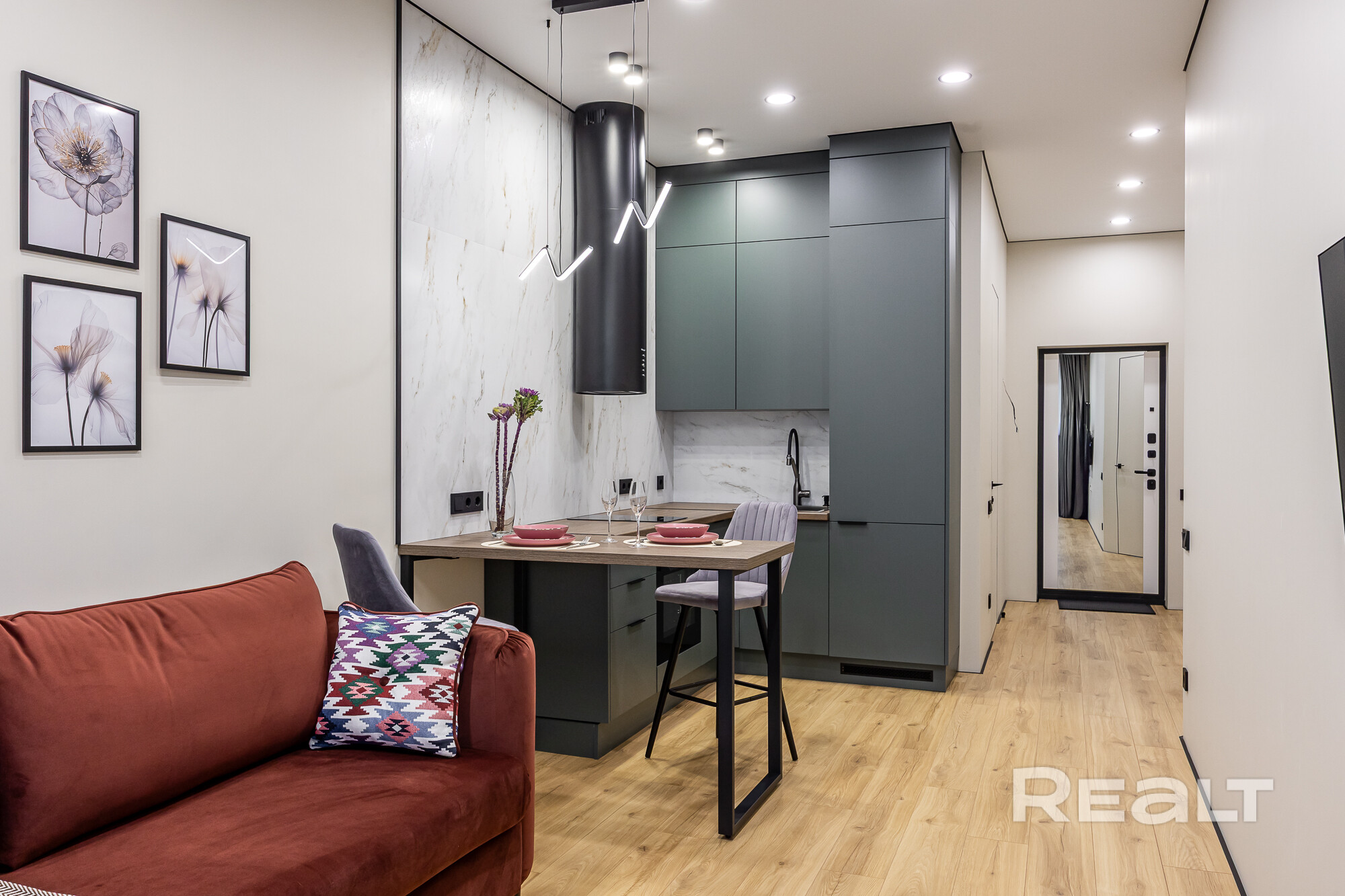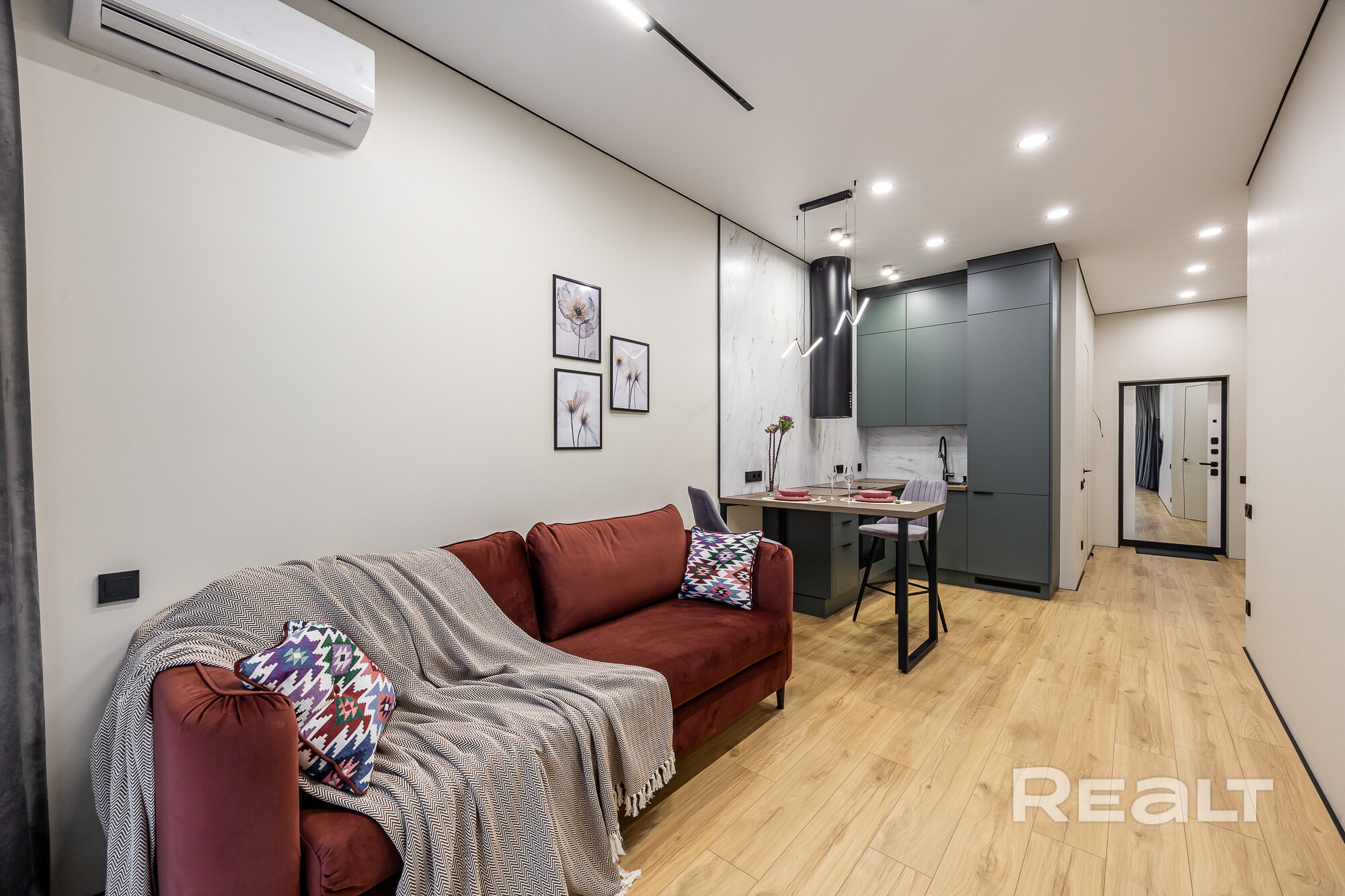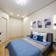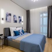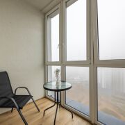 Просторная видовая евродвушка с потолками 3 метра и качественным ремонтом для себя, никто не жил. Панорамный вид на город и зелёный массив создаёт ощущение пространства и уюта. Скрытые двери высотой 2.30, покраска стен, керамогранит и премиальный ламинат Egger Eversense 34 класс 72 часа аква, формируют современную эстетику. Большая гардеробная, полноценное рабочее место на лоджии и кровать 180×200, диван 160×200 — удобство без компромиссов. Техника Electrolux/Exiteq новая и на гарантии.