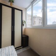 - Есть обустроенная лоджия, подходящая для хранения или дополнительного функционального пространства.