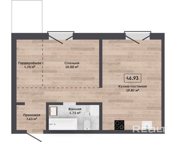• Формат: евродвушка - просторная кухня-гостиная + комната