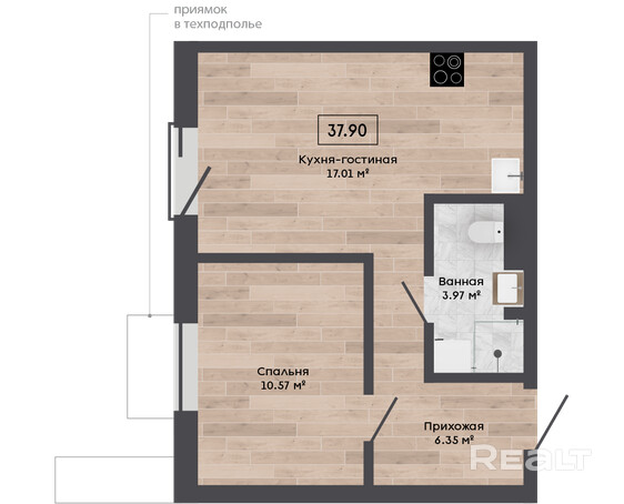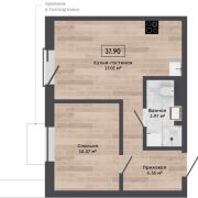 - Формат: евродвушка - просторная кухня-гостиная + комната