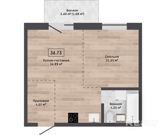 • Формат: евродвушка - просторная кухня-гостиная + комната