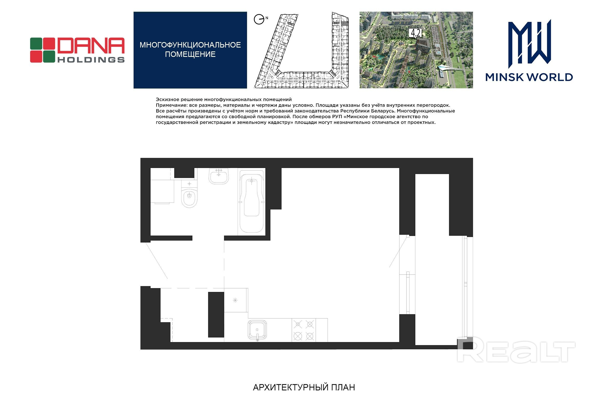 Высота от пола до потолка — 2,67 м. Большинство бизнес-апартаментов имеют панорамные окна, в каждом — лоджии.