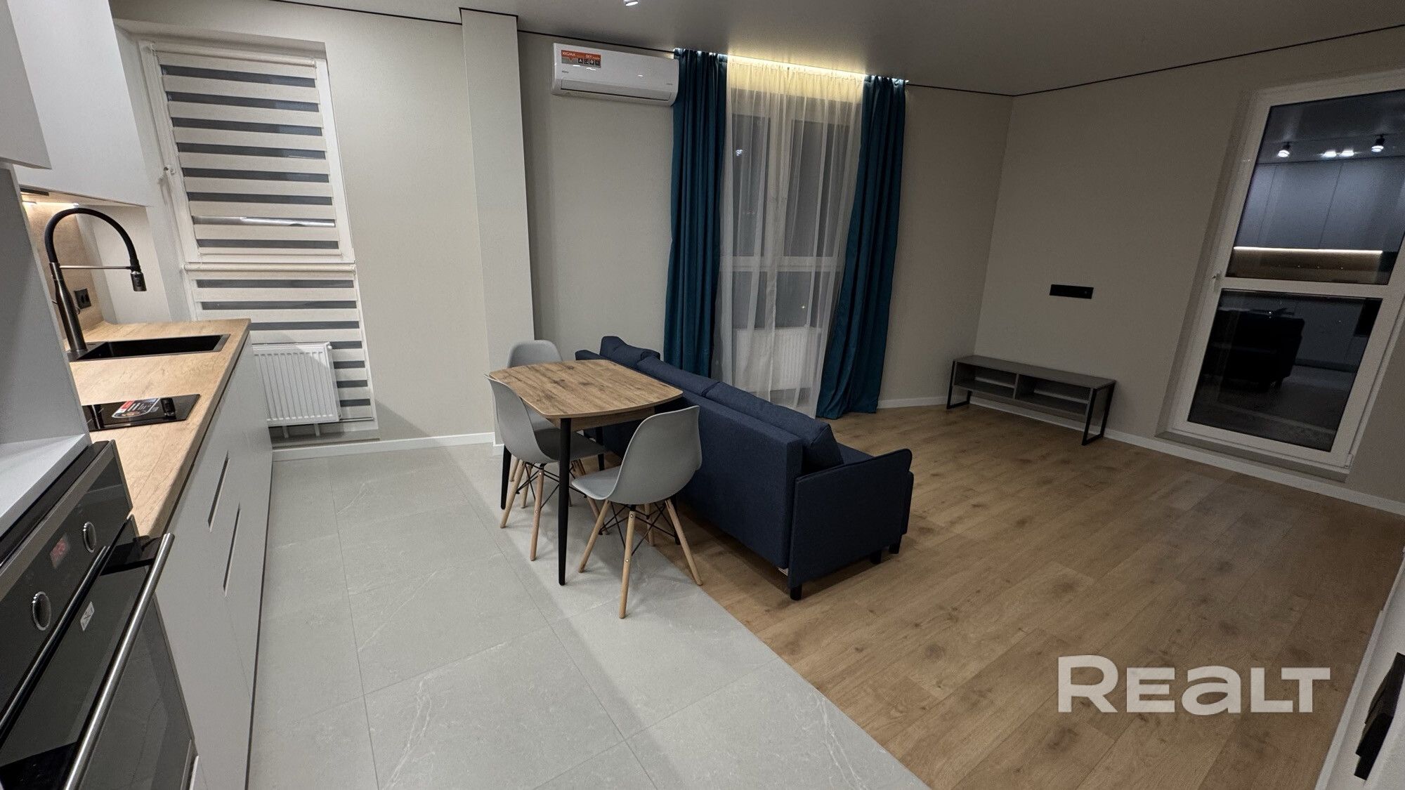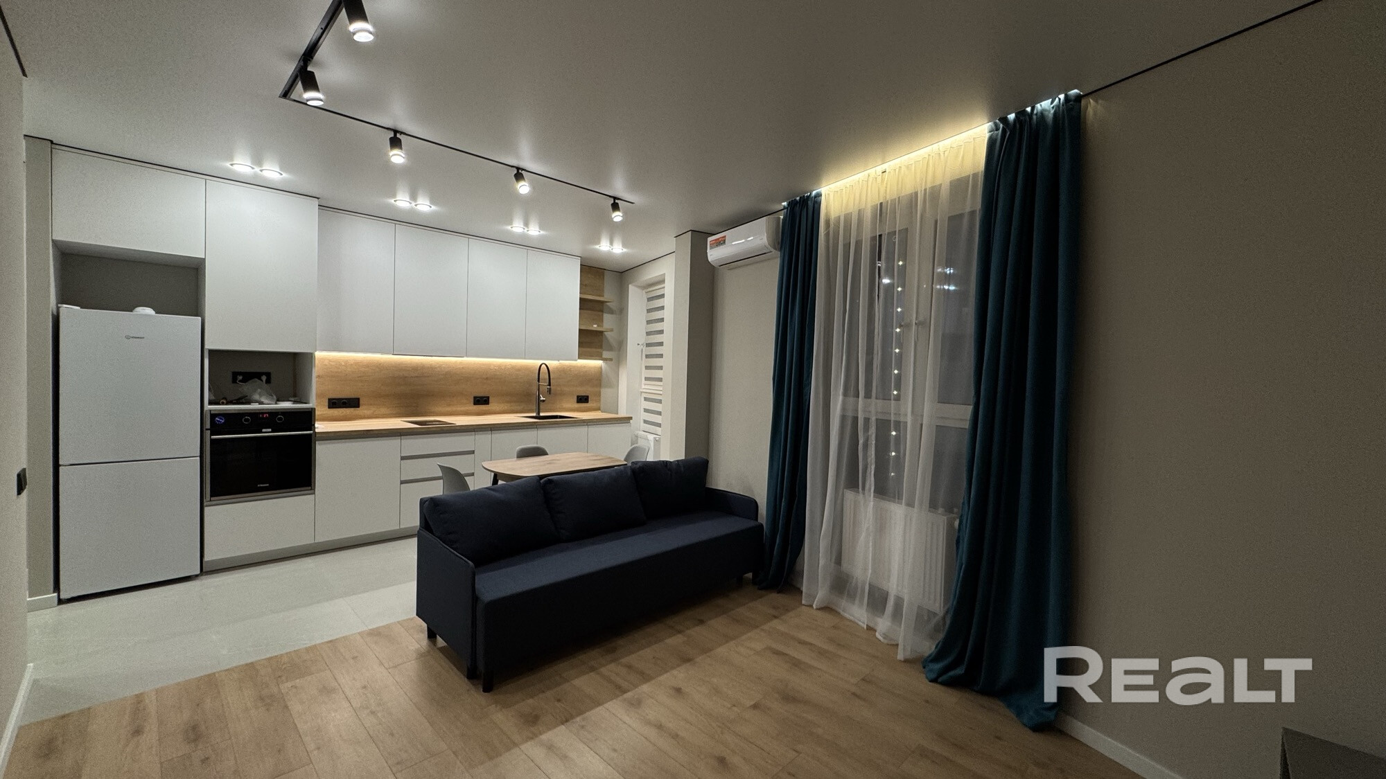 Общая площадь по СНБ 44,4 кв.м. Общая площадь 42.4 кв.м. Высота потолков 2.71 м. Отличный, качественный ремонт. Современная бытовая техника. Кондиционер. Полы с подогревом. Продуманная планировка и места хранения. Полностью готова к проживанию. Не кредитная, не в залоге, никто не прописан. В квартире никто не проживает.