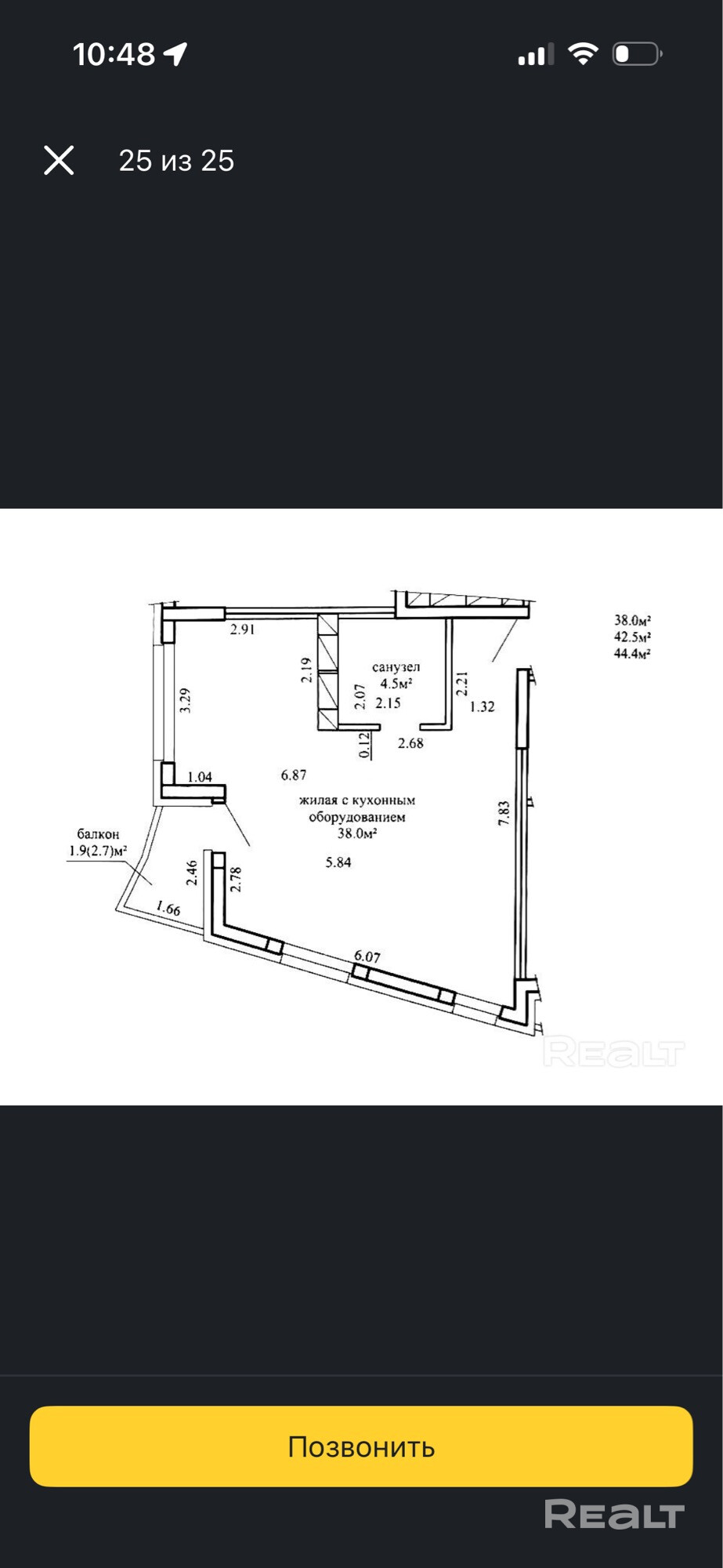 44.4 м²