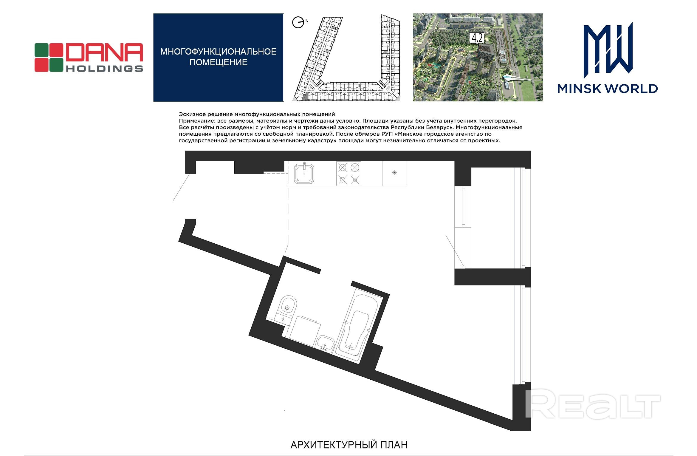 Высота от пола до потолка — 2,67 м. Большинство бизнес-апартаментов имеют панорамные окна, в каждом — лоджии.