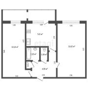 Площадь общая 46,85 кв.м., жилая площадь 30,77 кв.м., кухня 7.43 кв.м., также имеется застеклённая лоджия и раздельный санузел.