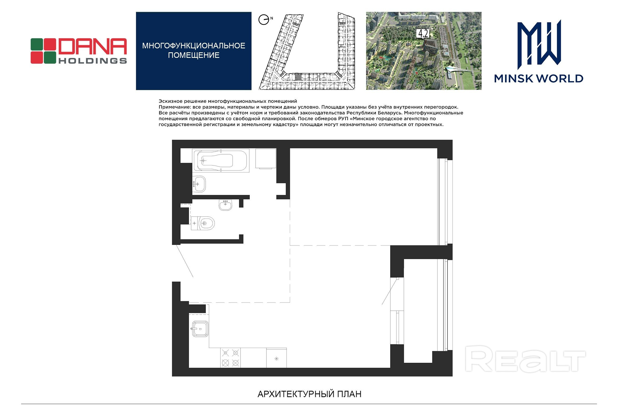 Высота от пола до потолка — 2,67 м. Большинство бизнес-апартаментов имеют панорамные окна, в каждом — лоджии.