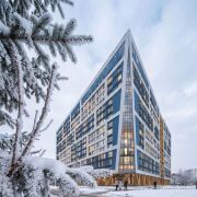 Дом именовали звучно — «Эверест». Оно спроектировано своеобразным полуколодцем, один из углов которого взмывает верх, будто пик горы. Под домом разместится подземный паркинг на 239 машино-мест. Первый этаж займут коммерческие помещения, а со 2-го по 15-й — жилые.