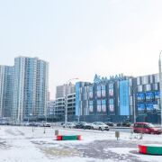 Зеленая парковая зона, международный финансовый центр и крупнейший торговый центр Авиа Молл в центре комплекса.
