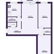 -Общая площадь - 57,6 м2, жилая - 42,9 м2. Все три комнаты изолированные, что обеспечивает личное пространство каждому члену семьи. Такой формат особенно удобен для семей с детьми, пожилыми родственниками или для тех, кто работает из дома.