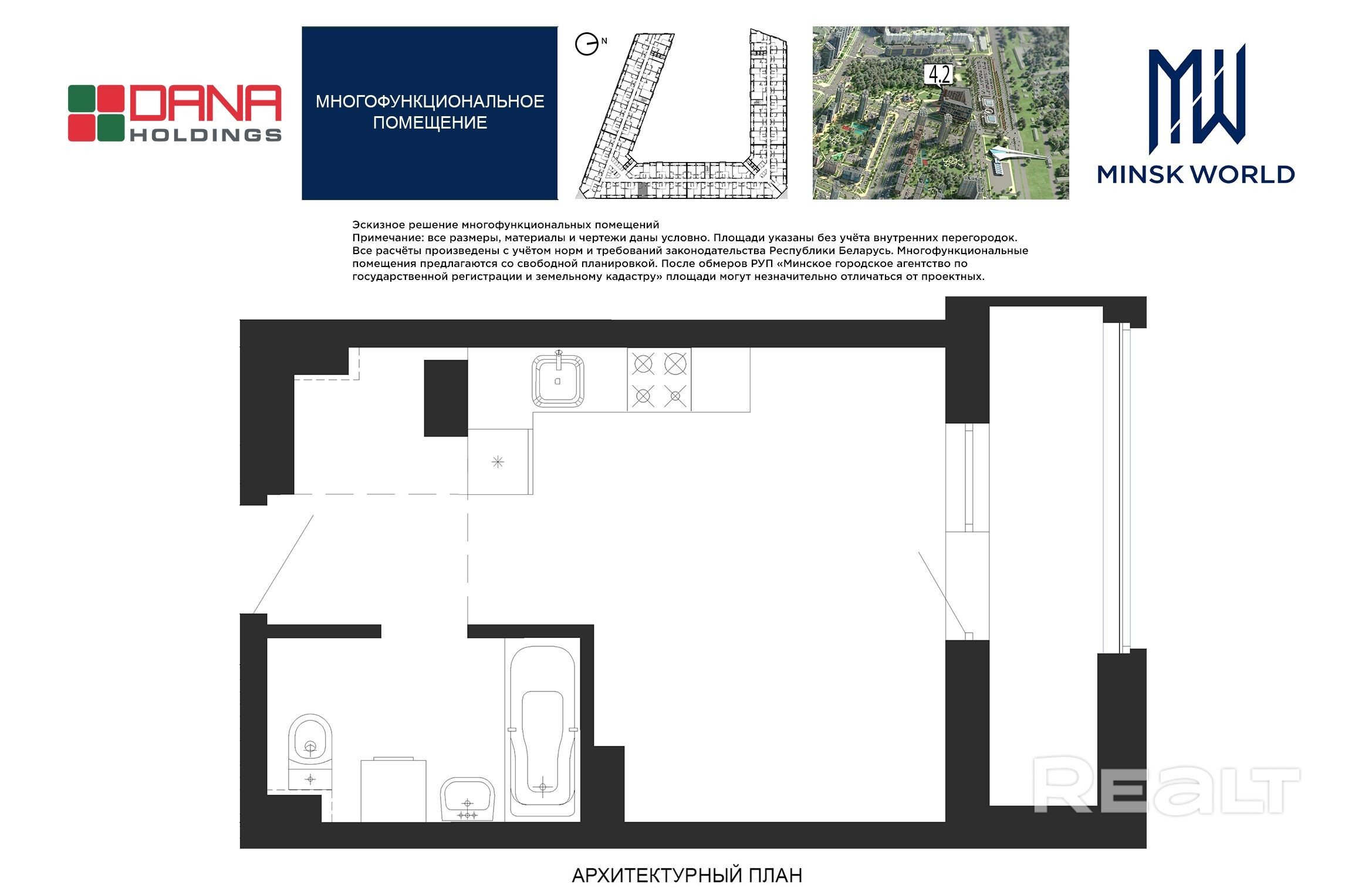 Высота от пола до потолка — 2,67 м. Большинство бизнес-апартаментов имеют панорамные окна, в каждом — лоджии.