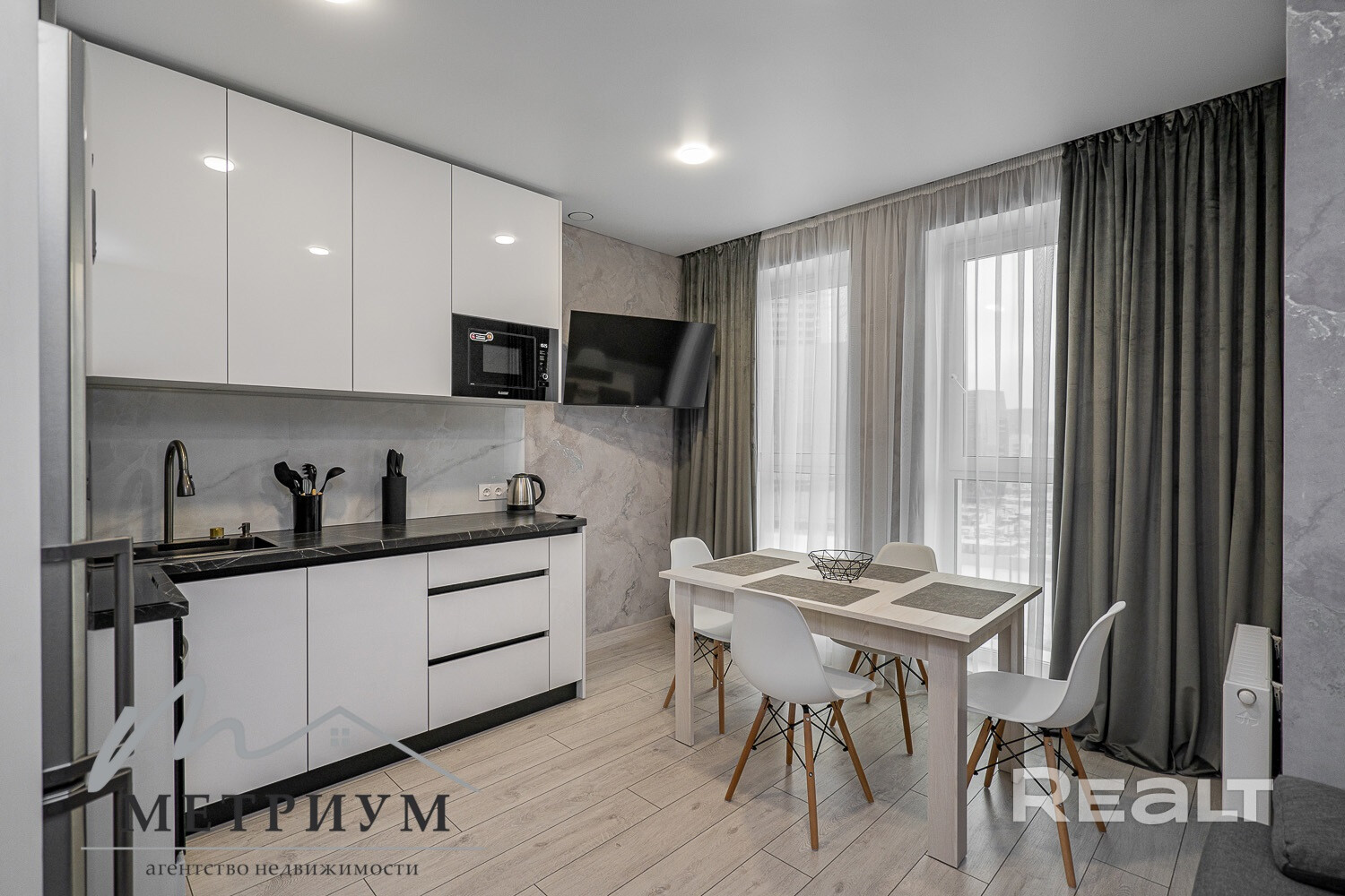 Продается светлая и просторная 2-комнатная квартира в премиальном доме Риджентс-парк в Минск-Мире с видом на бизнес центр и ТЦ «Авиа молл».