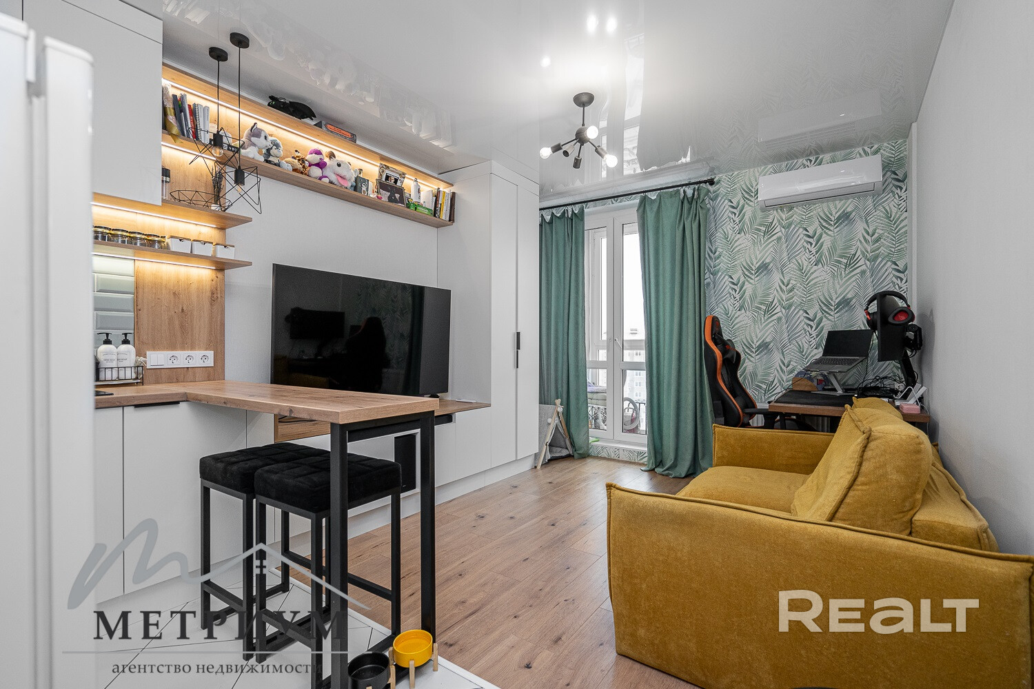 Отличная квартира с ремонтом в доме "Марина" ЖК "Минск-Мир". Полностью мебелирована и готова к проживанию. Станция МЕТРО В МИНУТЕ ХОДЬБЫ, рядом крупнейший ТЦ "Авиа Молл". Идеально для жизни и инвестиций. ЧИСТАЯ продажа!!!