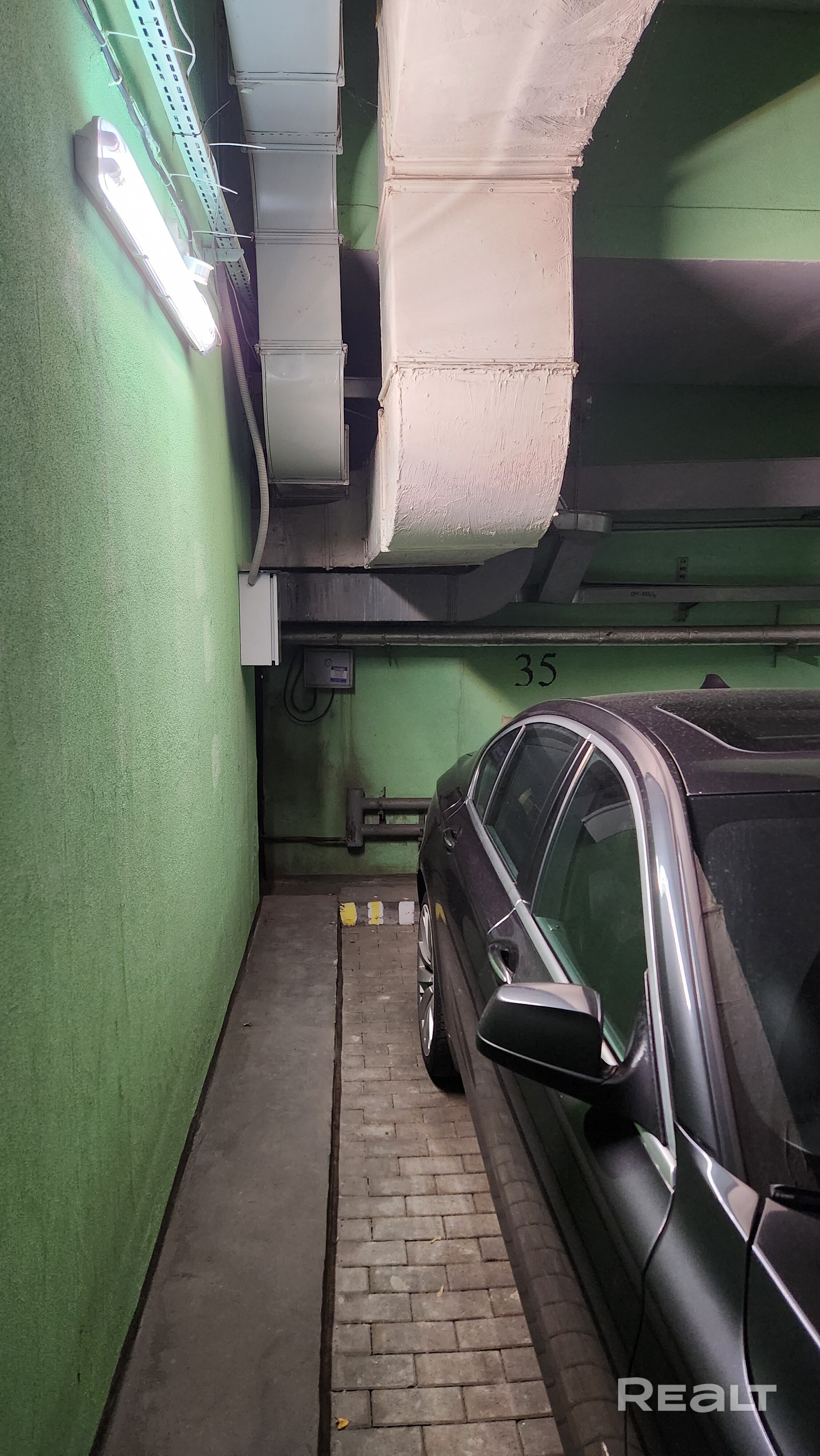 Машино место с зарядным для электромобилей, 32А, 7,2 Квт, отдельный счетчик электроэнергии, два тарифа, ночной 0.18р за квт и остальной 0,24 р . Высота в конце м/м 2 метра из за заднего воздуховод. Престижный район.