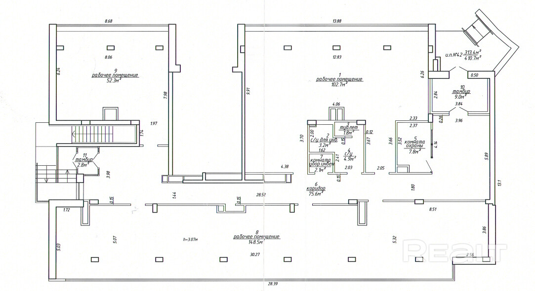 Продается офис с ремонтом общей площадью 410,7 м2, расположенный на 1-м этаже по адресу проспект Победителей 117.