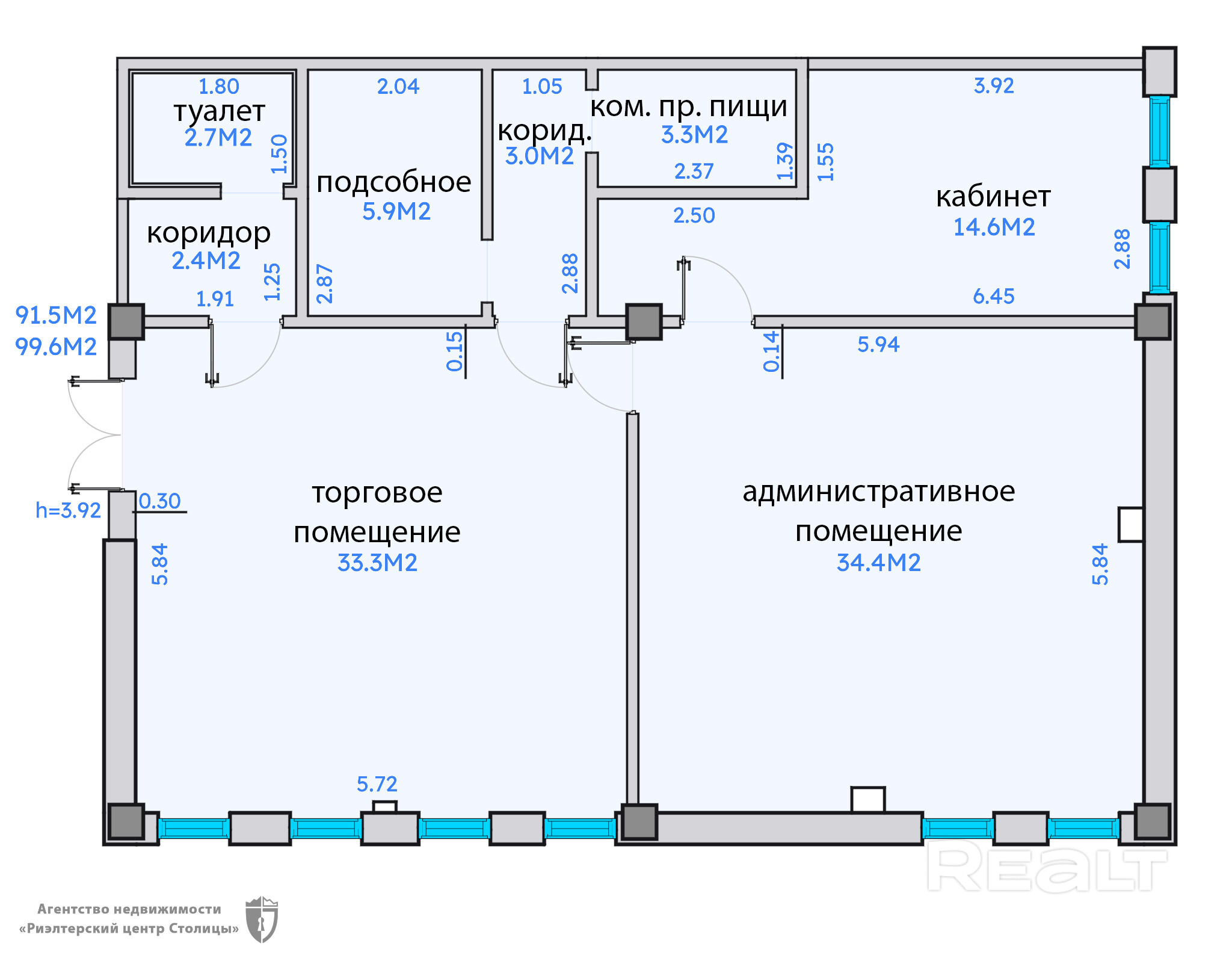 З просторные комнаты с с/у, столовой и подсобным помещением.