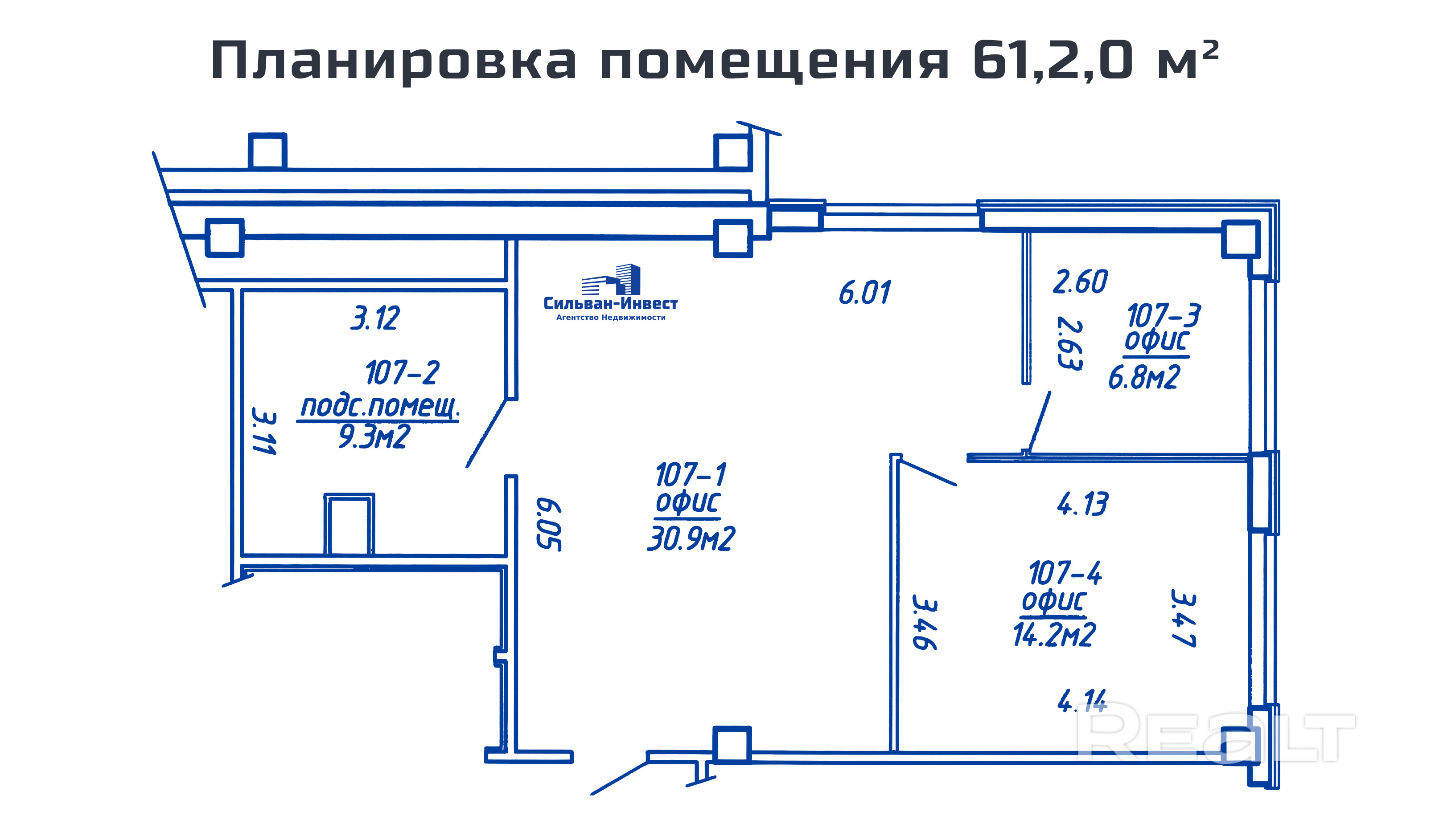 · 1 общий офис, 2 отдельных кабинета, подсобное помещение
