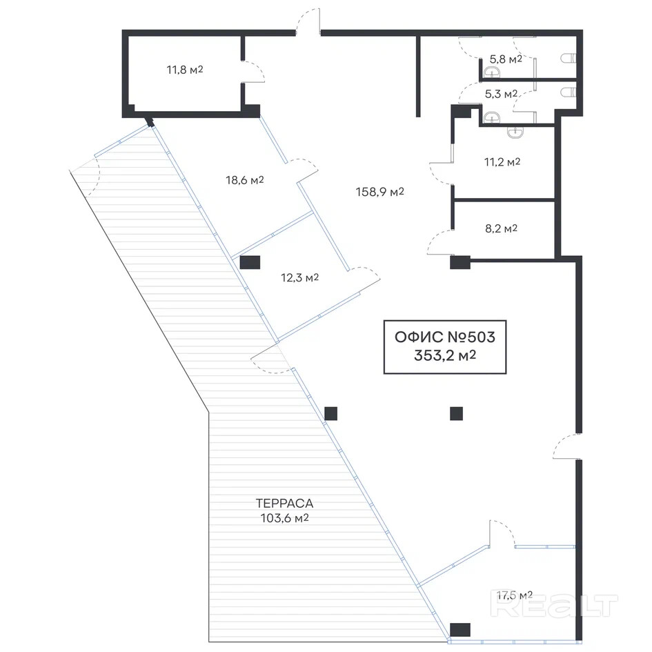 •  Площадь террасы: 103,6 м2