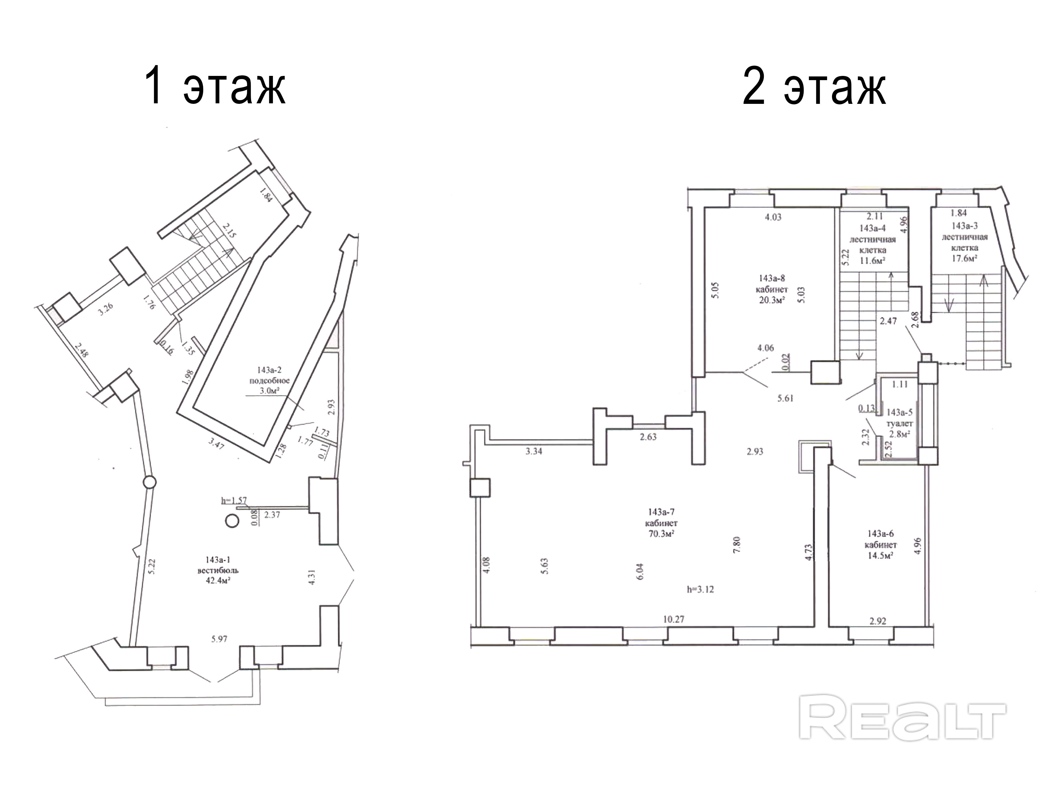 Этажность: Помещения расположены на двух уровнях: 1-й и 2-й этажи.