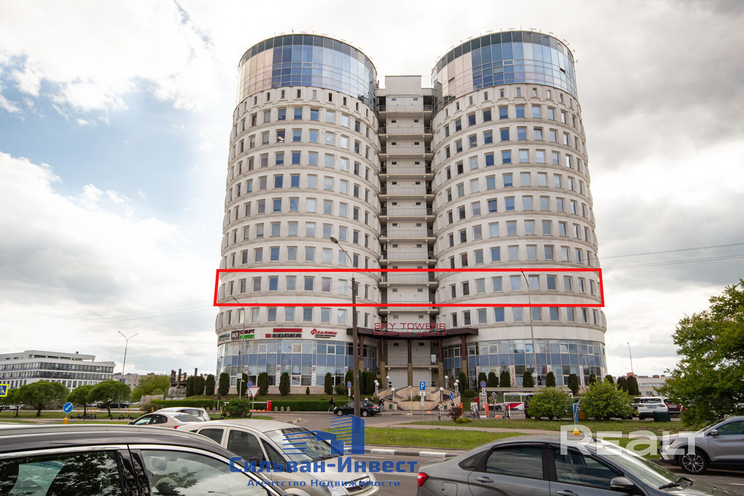Современный 13-этажный бизнес-центр «Sky Towers» («Скай Тауэр») класса «В» располагает на первых этажах зоной Reception, кафе, а остальные этажи отданы под офисы со свободной планировкой. Площадь здания 21000м2.