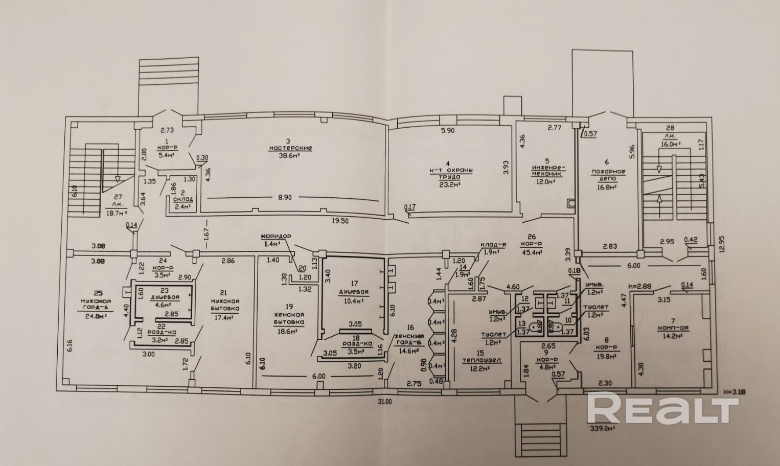 - двухэтажный административно-производственный блок – 823,4 кв.м.